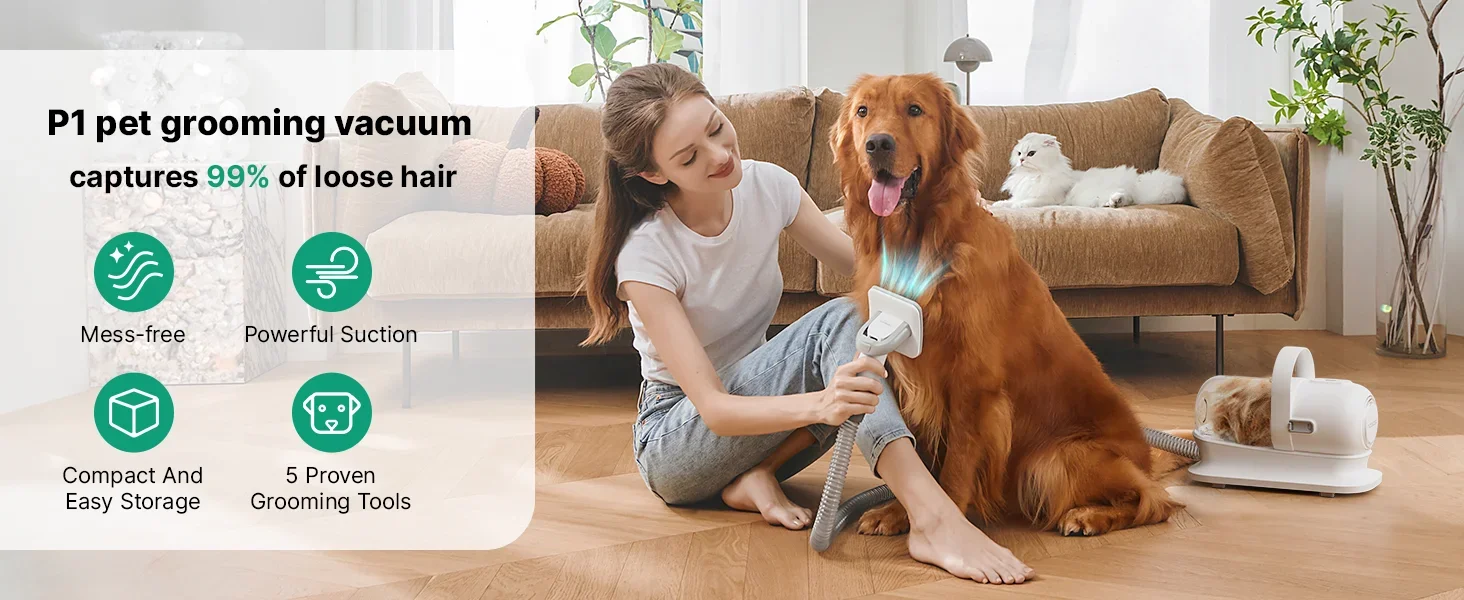 No Mess, No Fuss! With the easy-to-use P1 Pro, there's no more tangled hair and no more piles of fur spreading all over the house.
